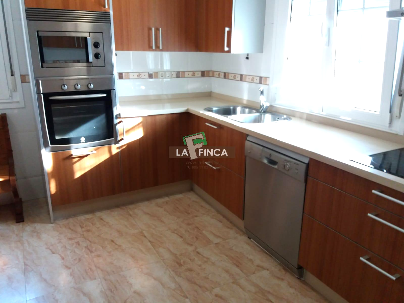 La distribución de la vivienda es de 3 dormitorios, 2 baños (uno de ellos en suite), salón y cocina independiente.