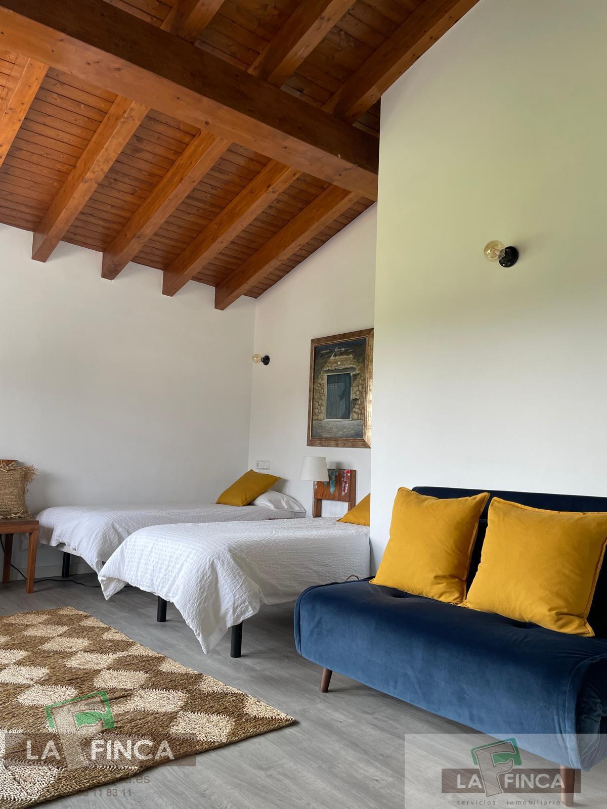 Su distribución es: tres habitaciones muy amplias, dos baños ( un de ellos con bañera y ducha y el otro con ducha amplia), salón comedor y cocina. También dispone de una casita de aperos en la finca.